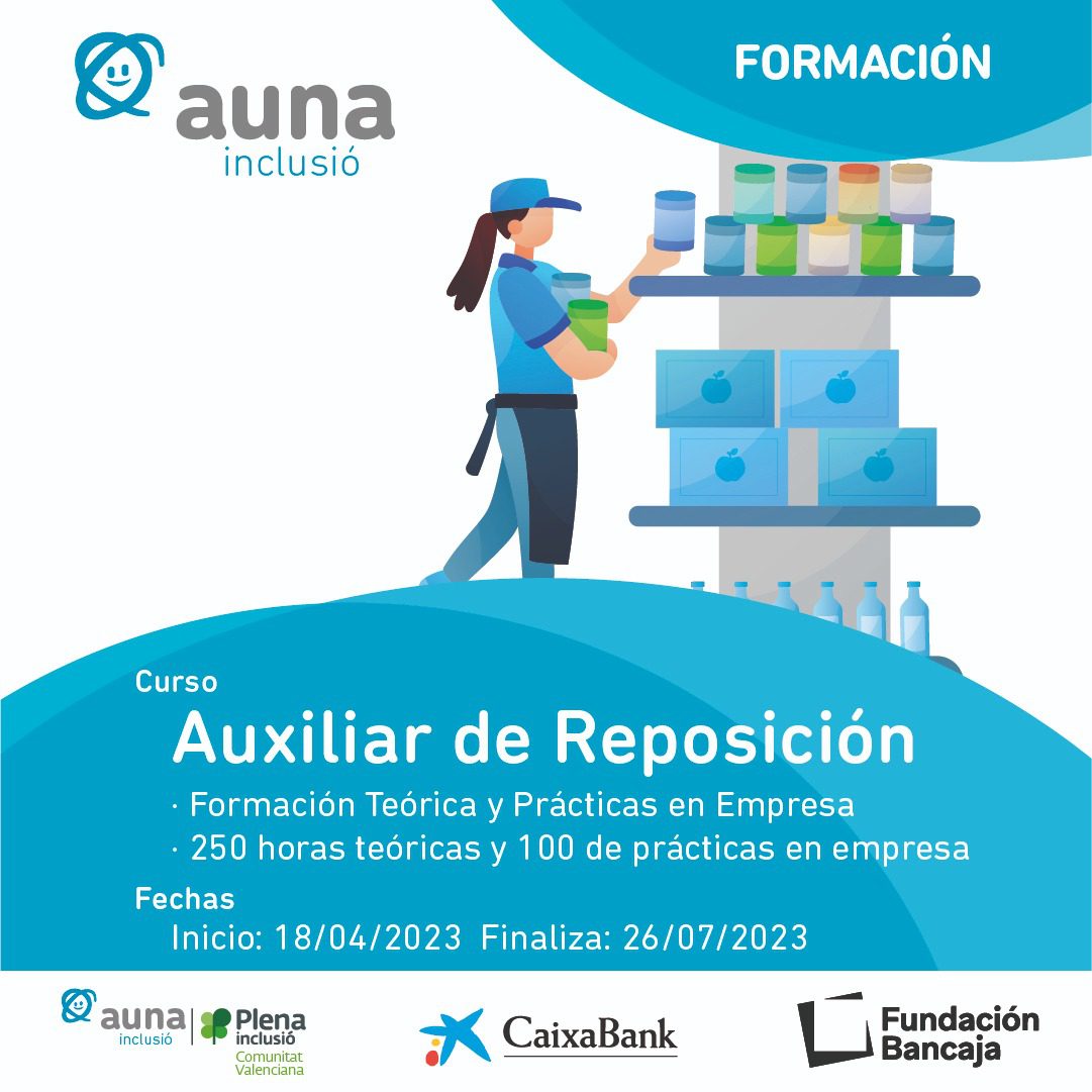 #Aunainclusió #auxiliardereposición #caixabank #capaces #discapacidad #diversidadfuncional #formaciónasmisaf #fundaciónbancaja #inclusión #oportunidades #plenainclusión #reposición
